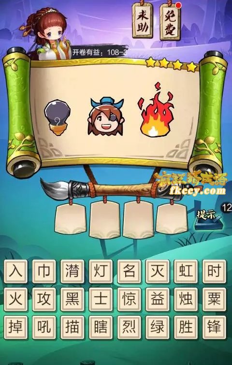 疯狂猜成语3黑色的灯独眼的瞎子一把火打一成语是什么