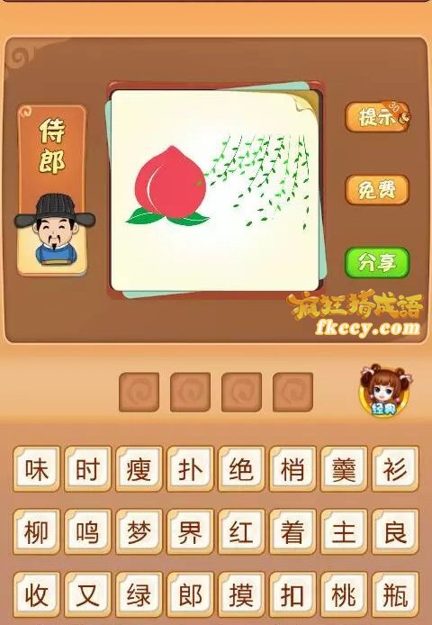 疯狂猜成语这一关中,图片中有桃子,柳树打一成语是什么?答案是哪个成语?