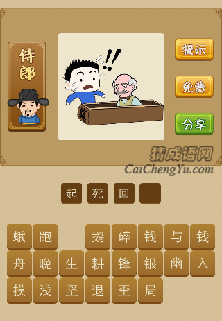 疯狂猜成语中,一个老人在棺材里坐着。是什么成语