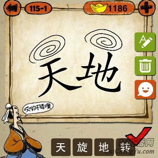 成语玩命猜图片中,天地两个字,晕晕的旋转,打一成语,答案是什么?