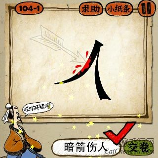 成语玩命猜有一关的图片中,一只箭射着人字,出了很多血,打一成语,答案是什么?