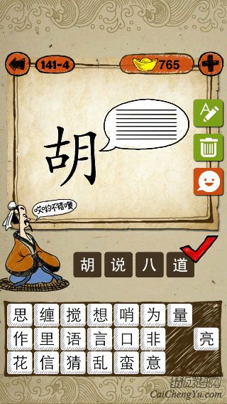 成语玩命猜图片中,一个胡字,右边有八条横线猜一成语答案是什么