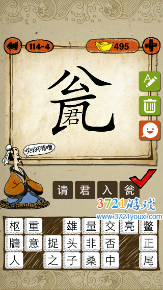 成语玩命猜游戏中,一个瓮字里面一个君字的成语是什么?