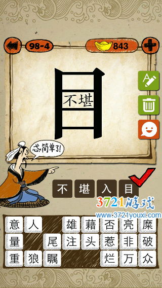 成语玩命猜游戏中,一个目字里面写着不堪两个字的成语是什么?