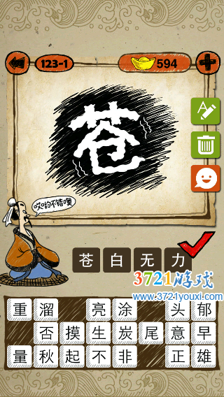 成语玩命猜游戏中,黑团里一个白色的苍字在发抖的成语是什么?