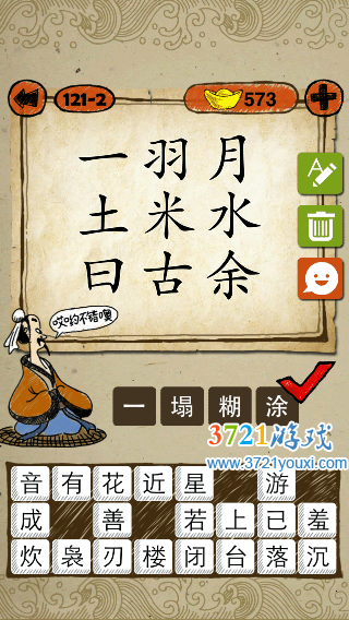 成语玩命猜游戏中,一土日羽米古月水余9个字的成语是什么?