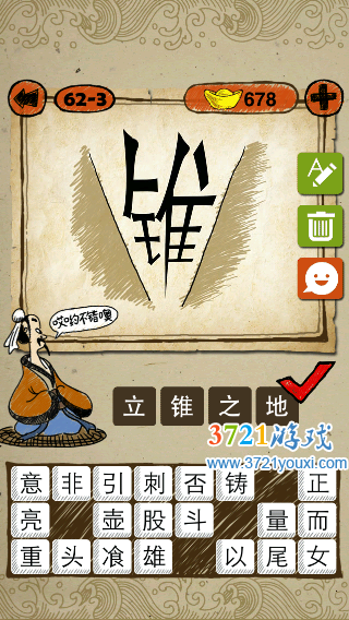 成语玩命猜游戏中,两座山中间一个锥字的成语是什么?