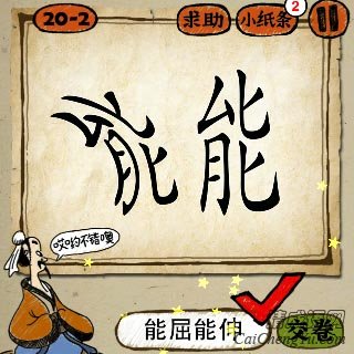 疯狂猜成语、看图猜成语、成语玩命猜图片中,一个歪着写的弯曲的能字和一个正着写的能字,答案是什么成语?