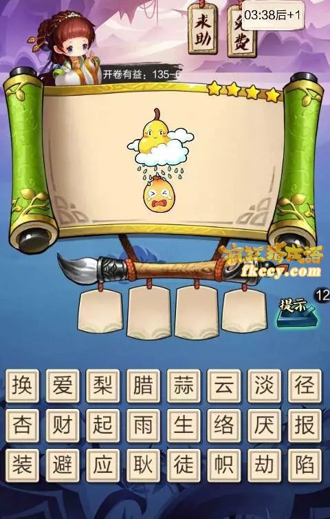 疯狂猜成语3有一关中,图片中,梨,云彩,杏子,雨,打一成语是什么?答案是哪个成语?