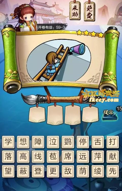 疯狂猜成语3女孩爬梯子望眼镜打一成语是什么