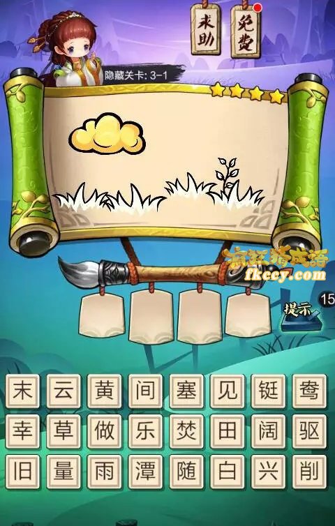 疯狂猜成语3白色的草和花上面黄色的云彩打一成语是什么