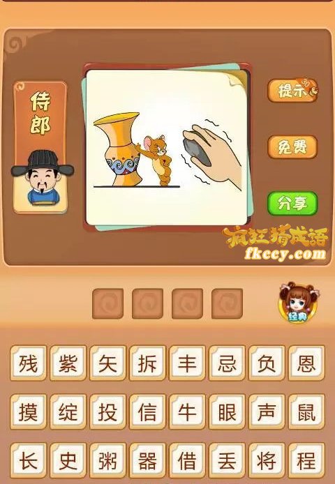 疯狂猜成语这一关中,图片中老鼠扶着花瓶,人手拿着石头发抖,打一成语是什么?答案是哪个成语?