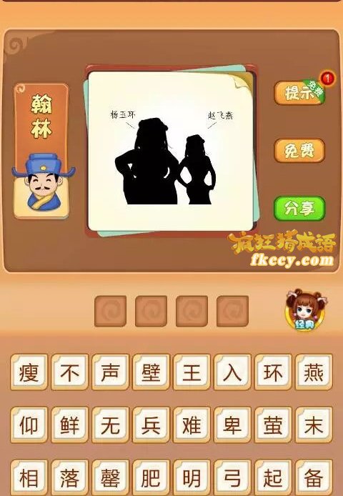 疯狂猜成语有2个人杨玉环和赵飞燕打一成语是什么?