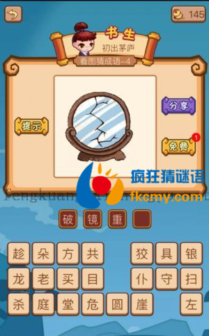 疯狂猜成语有一关中,一面镜子破碎了打一成语,猜一个成语答案是什么?