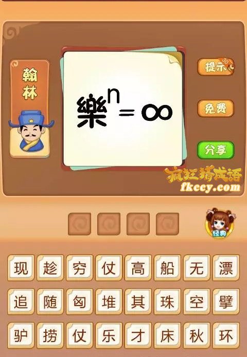 疯狂猜成语这一关中,图片中有乐的N次方=无穷,打一成语是什么?答案是哪个成语?