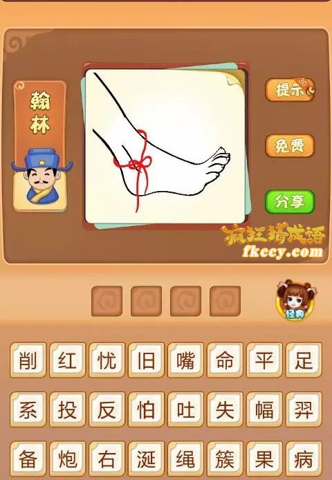 疯狂猜成语有一只脚上系了红绳打一成语是什么?
