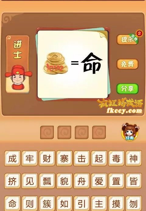 疯狂猜成语这一关中,图片中有金币,love = 命,打一成语是什么?答案是哪个成语?