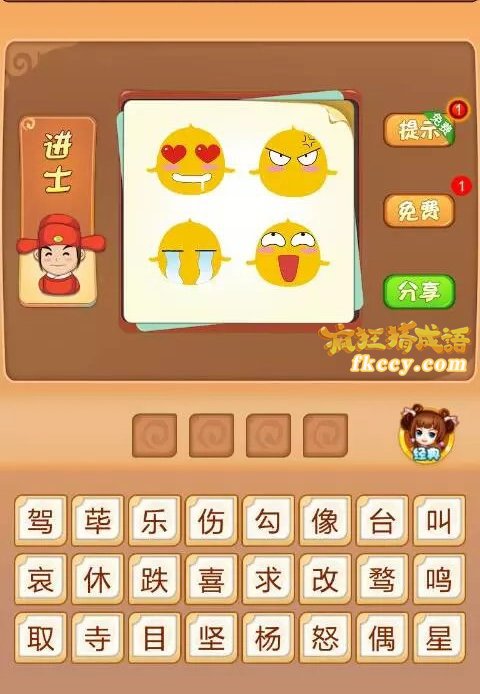 疯狂猜成语这一关中,图片中有四个表情,高兴,生气,哭泣,笑,打一成语是什么?答案是哪个成语?
