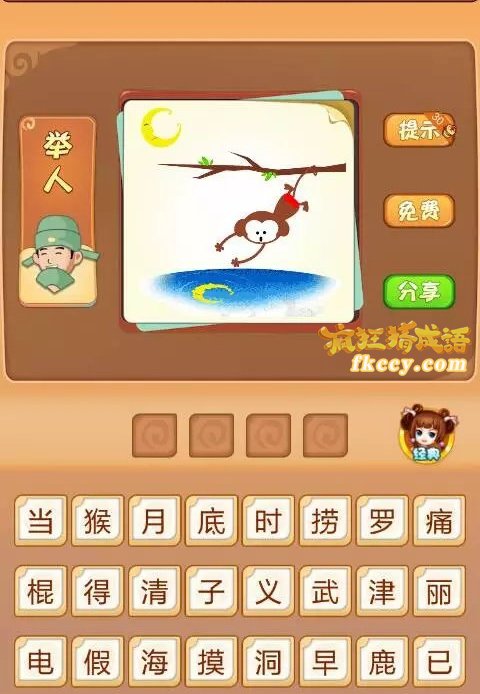 疯狂猜成语中有树枝挂着猴子捞月亮打一成语是什么