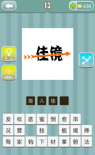 疯狂猜成语中,一只橙色的箭穿过佳境两个字是什么成语