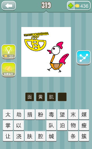 疯狂猜成语中,黄色的面子 一个公鸡是什么成语