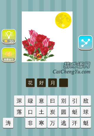 疯狂猜成语中,鲜花,圆月亮是什么成语