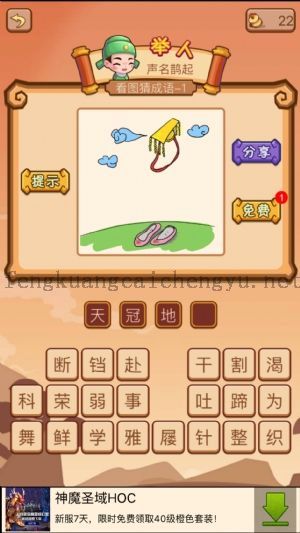 地上一双鞋子天上一个皇冠的答案是什么成语