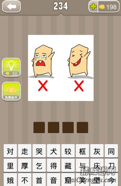 疯狂猜成语有两个小人一个在哭一个在笑和两个错号答案