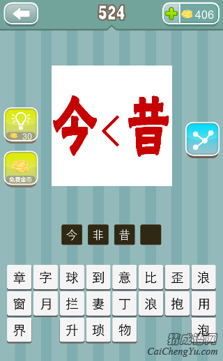疯狂猜成语、看图猜成语第524关图片中,今<昔,今小于昔,答案是什么成语?