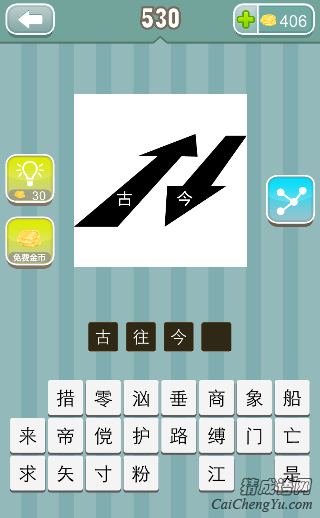 疯狂猜成语、看图猜成语第530关图片中,两个黑色箭头上分别有古字今字,答案是什么成语?