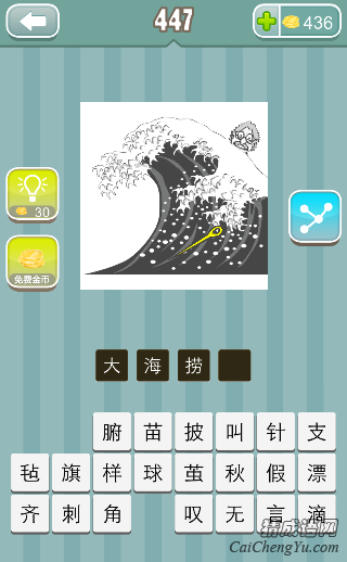 疯狂猜成语、看图猜成语第447关图片中,海里面一枚针,答案是什么成语?