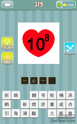 疯狂猜成语、看图猜成语第379关图片中,一颗红色的心里面10的八次方,答案是什么成语?