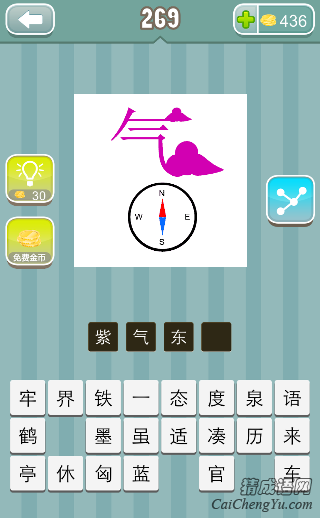 疯狂猜成语、看图猜成语第关图片中,紫色的气字,答案是什么成语?