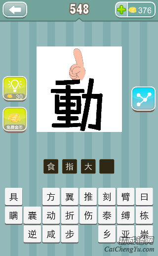 疯狂猜成语、看图猜成语第548关图片中,动字上面 一只手伸着食指,答案是什么成语?