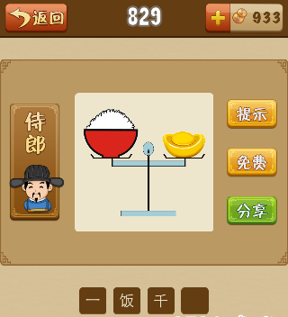 疯狂猜成语天平秤上一碗饭一个金元宝打一成语