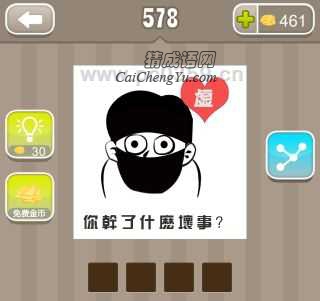 看图猜成语、成语玩命猜、疯狂猜成语一个人带着口罩,“你干了什么坏事”答案是什么?这里就为大家公布这个成语的答案,首先为大家解析这个图片中成语需要如何释义: 疯狂猜成语图片寓意一般为3个方面:第一种图片中的文字就是包含了答案的近义或者谐音;第二种图片形容的内容就是答案;第三种图片和文字组合成的答案。