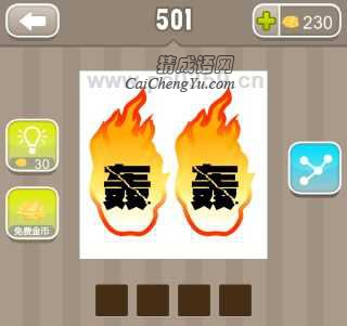 看图猜成语、疯狂猜成语轰轰两个字背后有火是什么?