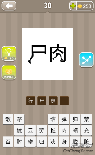 看图猜成语、疯狂猜成语第关图片中,尸字有一只脚,肉字里面两只脚,答案是什么成语?