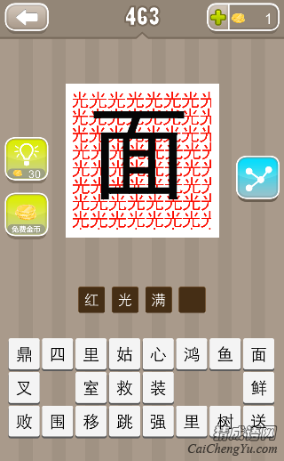 看图猜成语、疯狂猜成语图片中,一个面字,很多光字上面一个面,答案是什么成语?