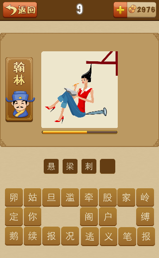 看图猜成语一个女人头发吊字上面旁边一颗钉