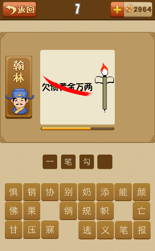 看图疯狂猜成语每周竞赛图片中,欠债黄金万两,一支笔,答案是什么成语?