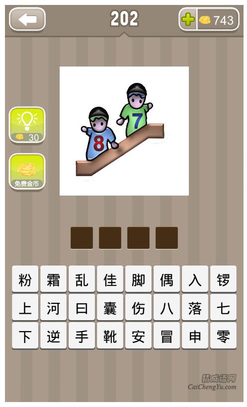 看图猜成语之七上八下_疯狂猜成语和看图猜成语第202关答案小编已经整理出来了,对于那些看图猜成语之七上八下这一关的玩家一定有帮助,下面就是看图猜成语202关答案: