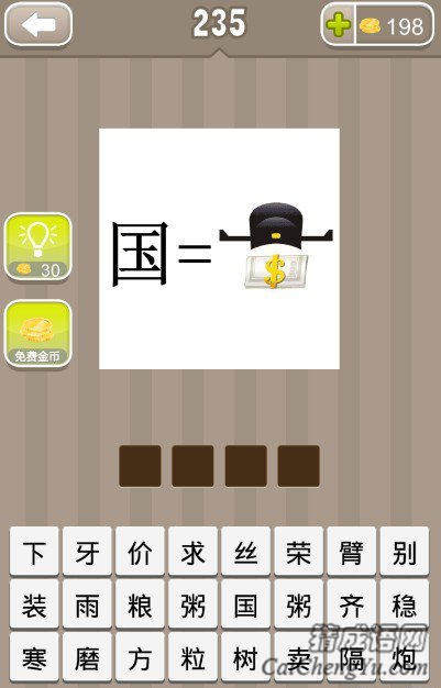 看图猜成语国=官帽和美元答案是什么?勾结投靠敌人,出卖国家的权益,谋求个人的富贵。具体来看看图猜成语国=官帽和美元答案是什么?