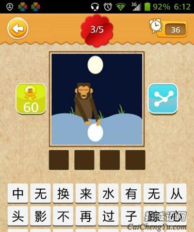 看图猜成语中,天上一个月亮,一只大猩猩手里拿着月亮是什么成语?如果你说是水中捞月肯定是不正确的,生活中有很多东西他的表达手法是非常相似的,可以称之为同种词义,所以看到下面的图很多的玩家都会有一个误解,发现错误的时候就很难调整正确的方向,说明你的思维被定在一个电上。